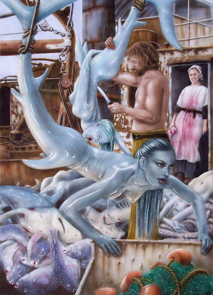 Um dies empfindbarer zu machen, habe ich die Wesen 'vermenschlicht', also als Nixen dargestellt. |